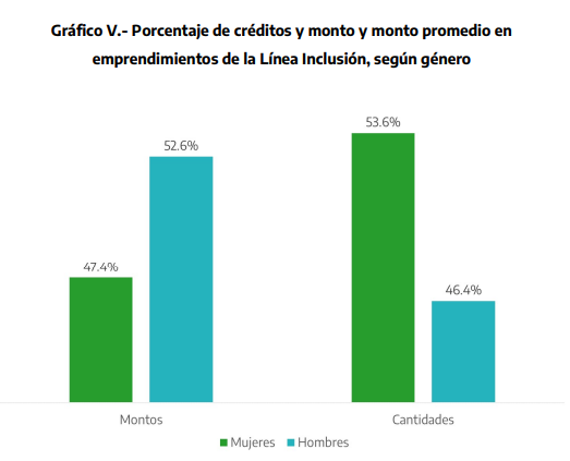 La Línea Inclusión tuvo un fuerte enfoque en mujeres jóvenes, quienes enfrentan mayores dificultades para acceder al crédito debido a su inserción desigual en el mercado laboral. El 22% de los créditos fueron otorgados a mujeres menores de 35 años, y el 56% de los emprendimientos financiados fueron liderados por mujeres.